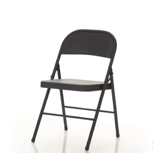 Make your next indoor gathering, event, or living space unforgettable with the COSCO All-Steel Folding Chair. Built to accommodate the idea of small space living or versatile event furniture that’s easily set up and taken down, this folding furniture product is versatile and multipurpose as you can use it for your personal use, extra seating at events, weddings, and other indoor occasions. The sleek black color offers the option to add a subtle touch of simple sophistication to your environment and doesn’t clash with existing furniture arrangements or color palates! The all-steel frame is a durable, heavy-duty long-term purchase you’ll be able to use over and over again without fear! Not only will this product’s durability bring you peace of mind, but the non-marring leg tips protect your floor’s surface and promise to not slip during your family party. When the night is done and it’s time to take down the chairs, the hinge fold option featured with the chair allows it to neatly fold flat and can be easily stored in closets or basements – out of sight, out of mind.